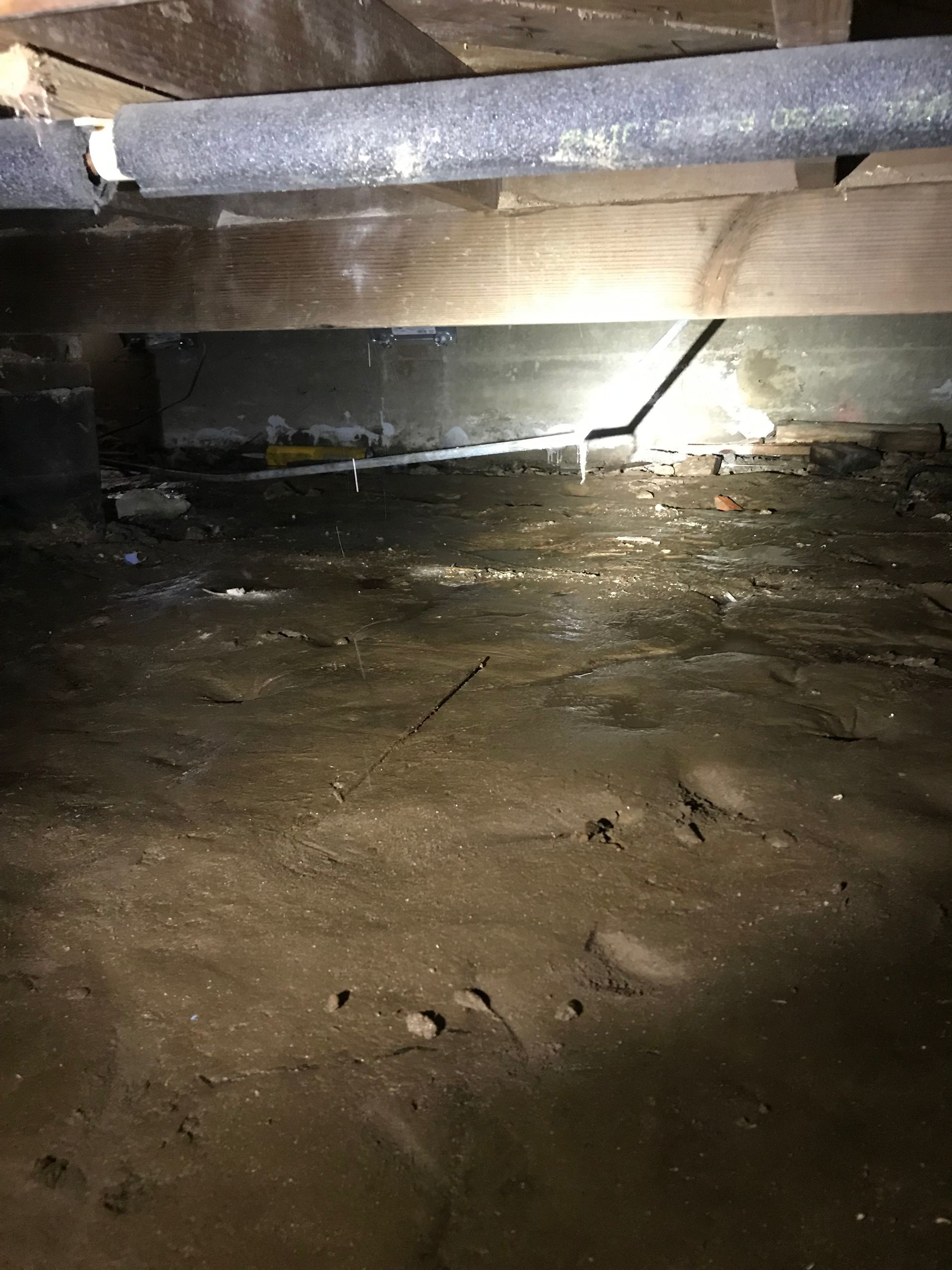 A property owner in Newport Beach CA who was suffering with asthma and sinus infections as well as musty smell throughout her home, discovered wet soil under her crawlspace which was covered with 6 mil plastic and a structure that suffered from an old water damaged.
